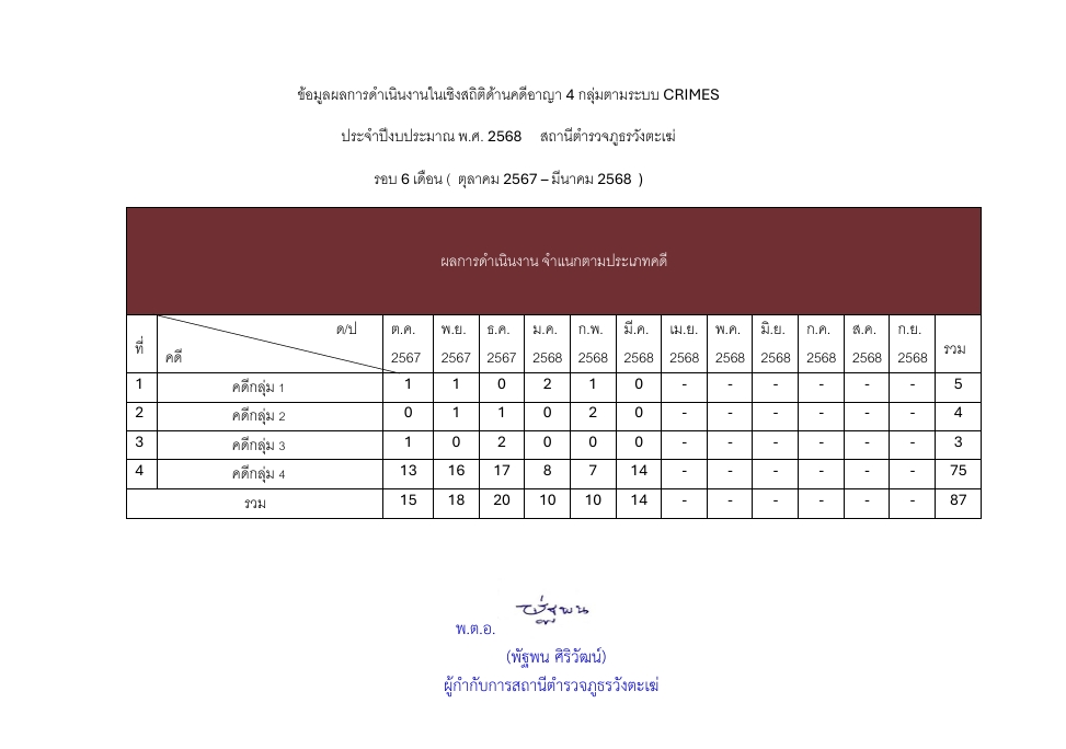 1. ข้อมูลผลการดำเนินงานในเชิงสถิติด้านคดีอาญา 4 กลุ่มตามระบบ CRIMES