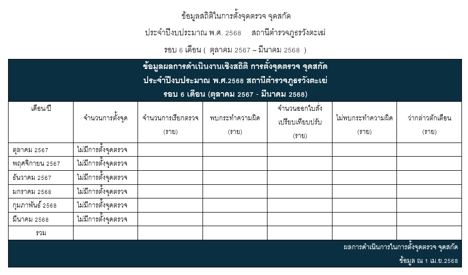 ข้อมูลผลการดำเนินงานในเชิงสถิติการตั้งจุดตรวจ