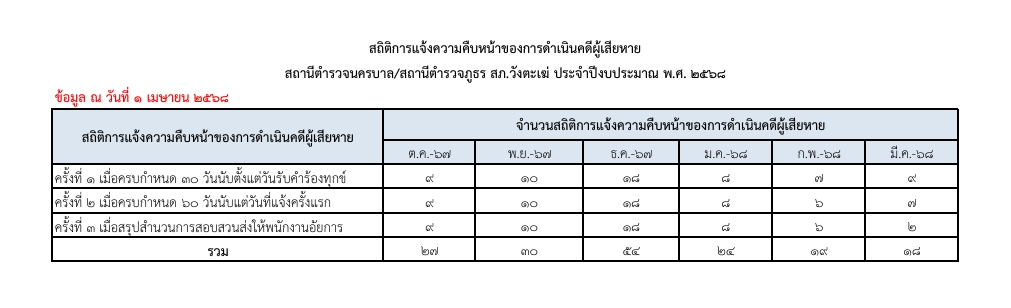 2. ข้อมูลสถิติในการแจ้งความคืบหน้าของการดำเนินคดี